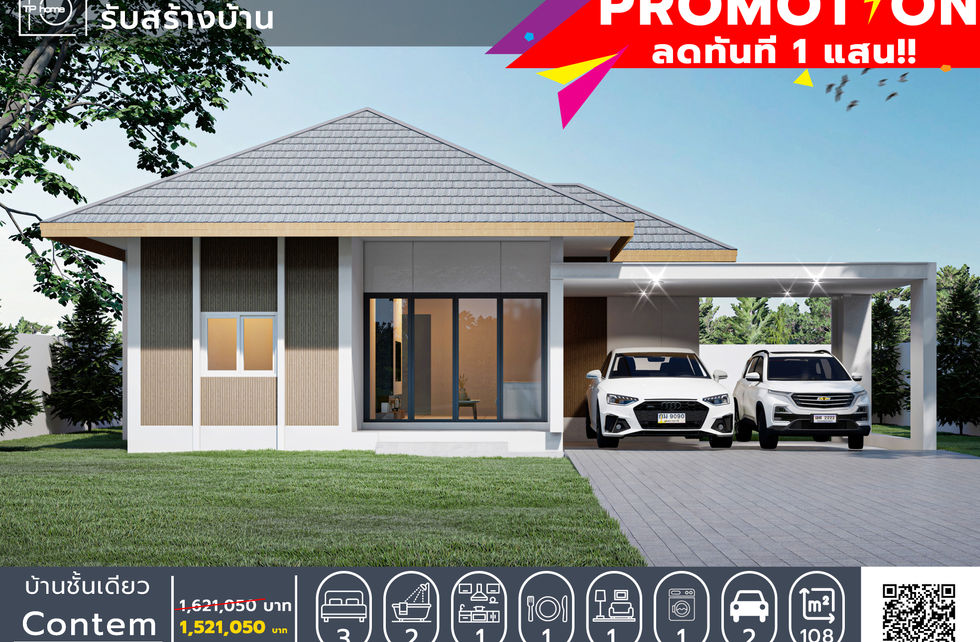 3 ห้องนอน 2 ห้องน้ำ จอดรถ 2 คัน ห้องรับแขก ห้องครัว ห้องทานข้าว โซนซักล้าง