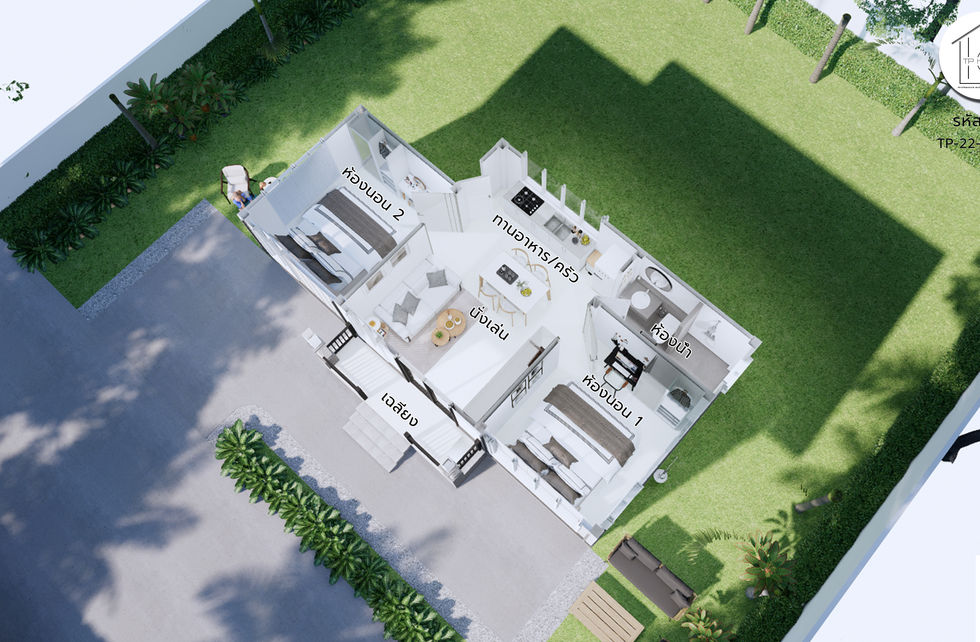 2 ห้องนอน 1 ห้องน้ำ ห้องรับแขก ห้องครัว ห้องทานข้าว โซนซักล้าง