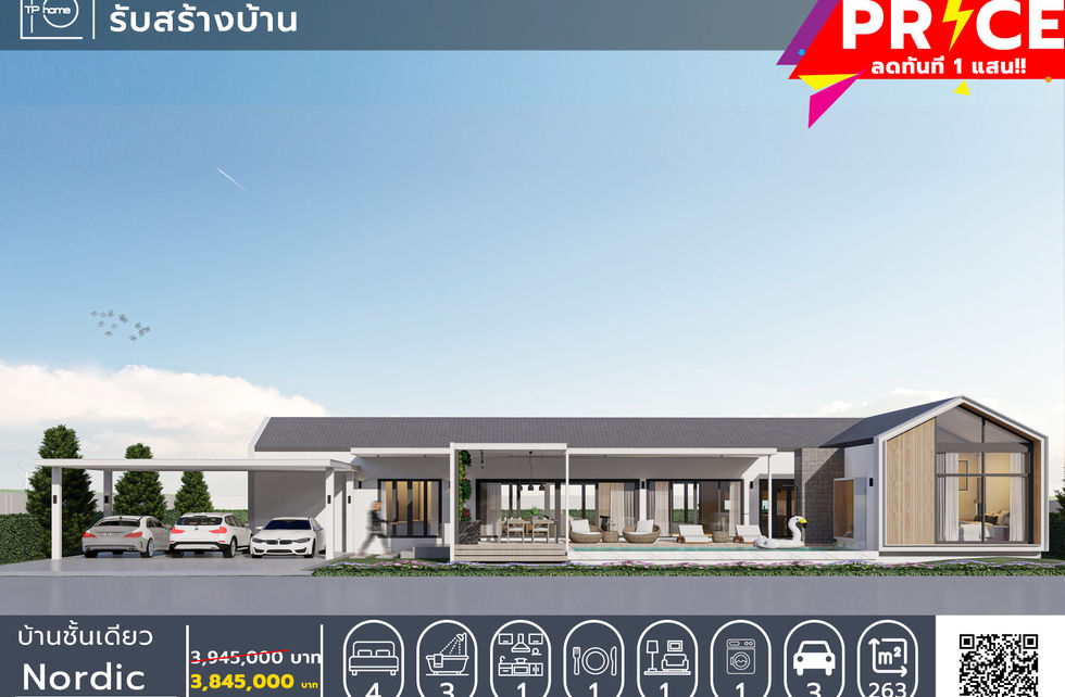 4 ห้องนอน 3 ห้องน้ำ จอดรถ 3 คัน ห้องรับแขก ห้องครัว ห้องทานข้าว โซนซักล้าง สระว่ายน้ำ